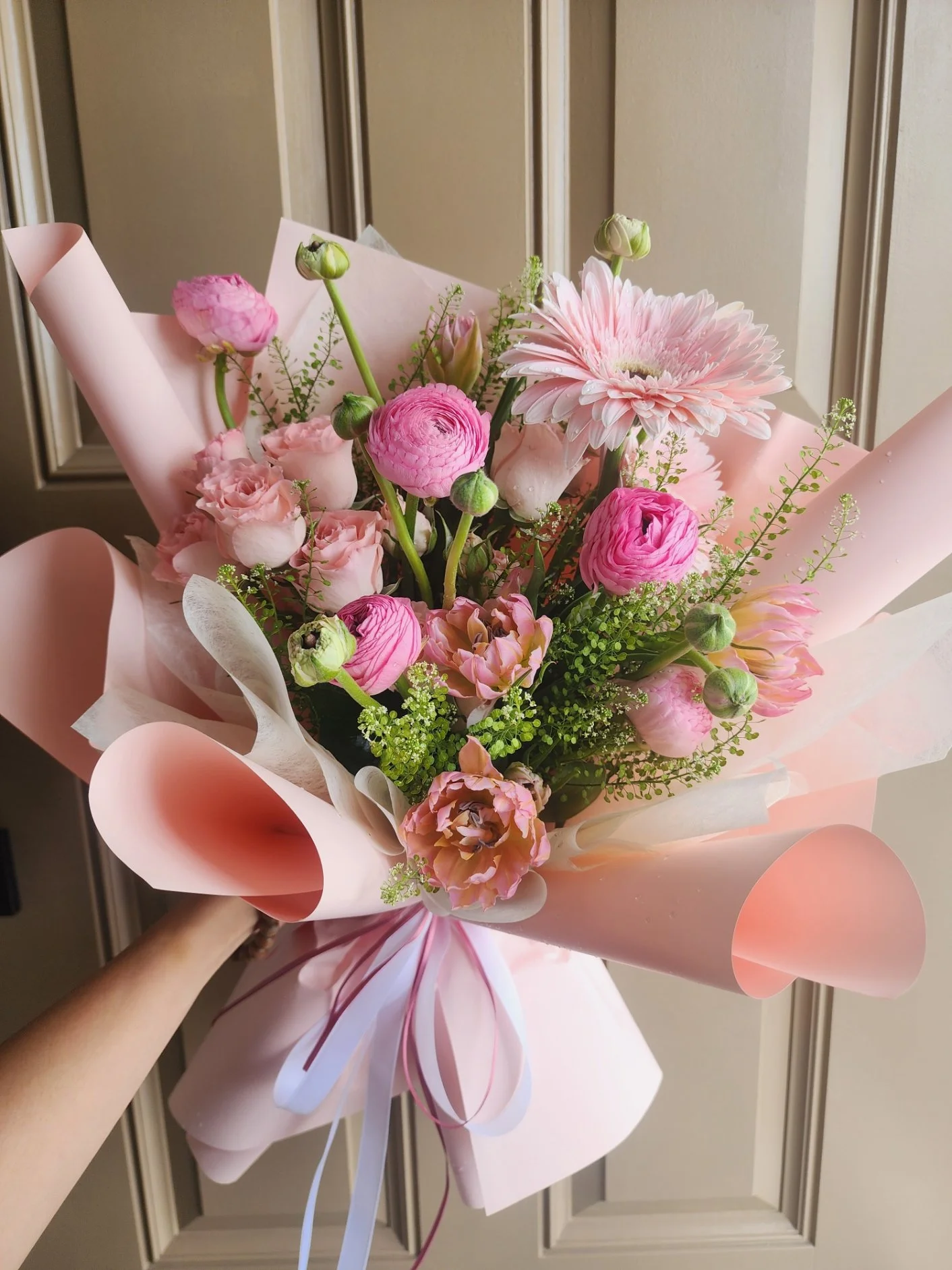 Cloud Dancer 2026: an airy, luminous white with a hint of silvery grayβlike morning mist. With our White Color Scheme arrangementβlayered white blooms, soft textures, glossy foliage and subtle highlightsβit enhances purity and calm for a refined, timeless, modern statement.